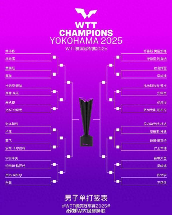 WTT横滨冠军赛2025将于8月7日至11日,在横滨文化体育馆举行,比赛设男、女单打名堂,冠军将赢得1000点宇宙排行积分。8月5日下昼,比赛签表认真公布。