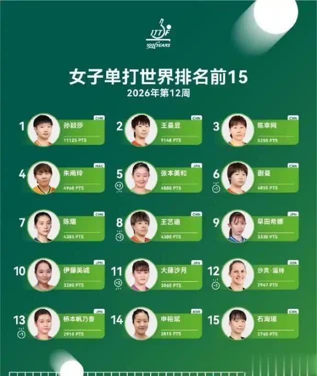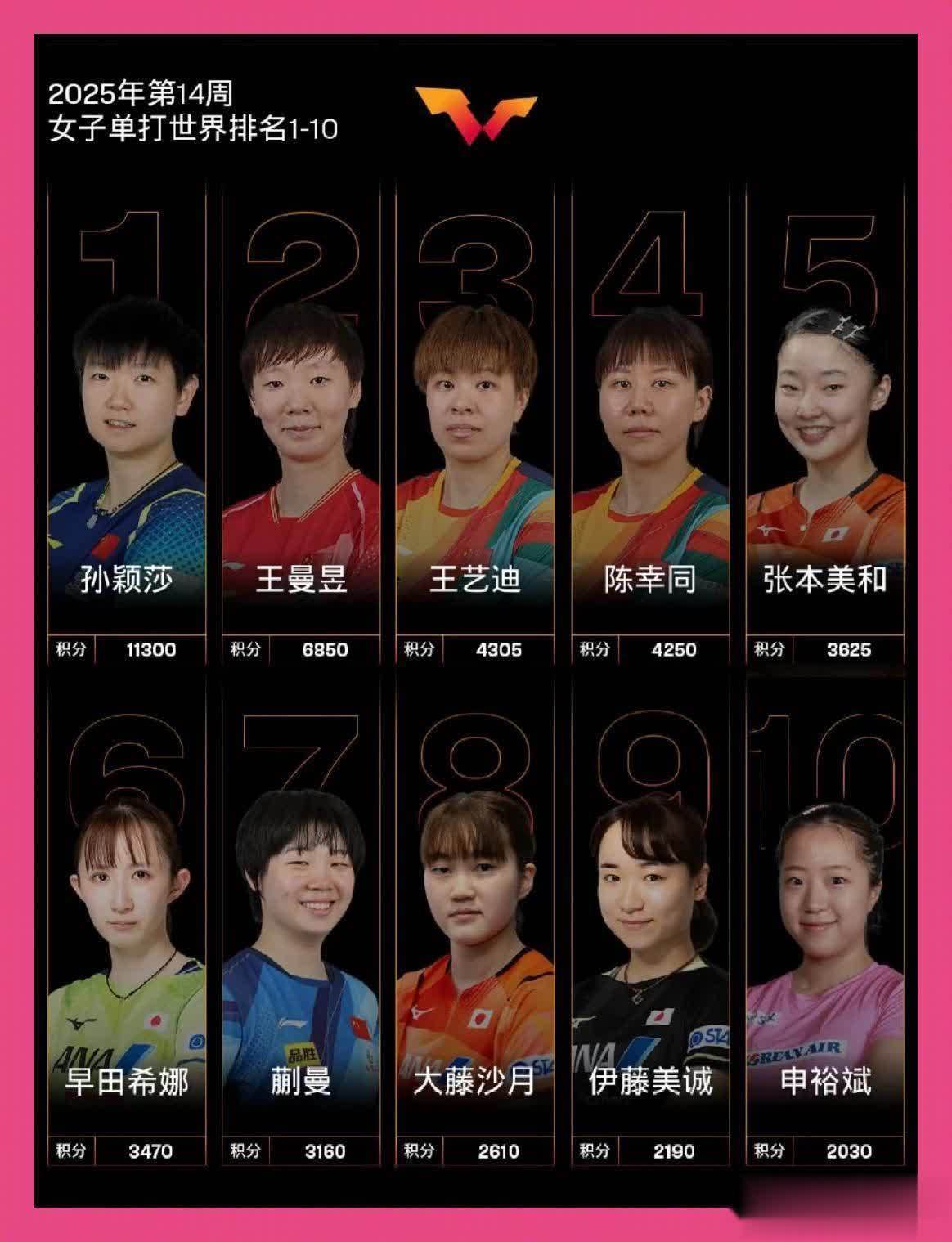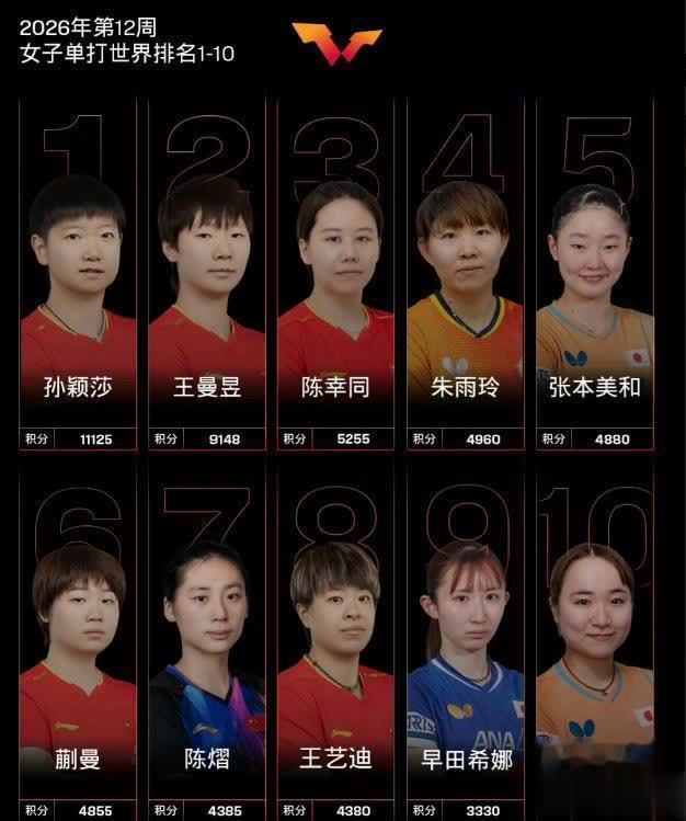 新一轮的女单积分排名下来后,能彰着嗅觉到,其他国度的选手势头很强盛。